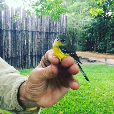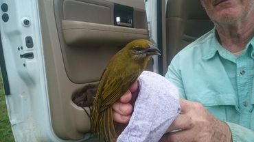 Images illustrate release of rehabilitated Brown Pelican back into the wild, in addition to some of the species of birds surveyed.