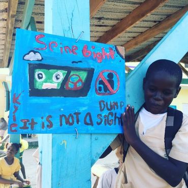 CRC has been leading clean-ups with partners such as Turtle Inn and various other community members on the Placencia Peninsula since September 2016. Our efforts have inspired a new generation of youth who want a clean community, such as in Seine Bight. CRC mobilized this energy in working with the youth in Seine Bight by creating pollution awareness signs made out of recycled material that are displayed in various locations around Seine Bight.